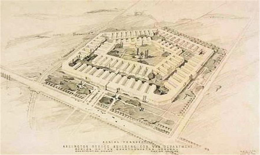 1941年初,希特勒控制了欧洲大部分,时任美国总统罗斯福宣布全国进入紧急状态。迅速壮大的美国陆军部(存在于1789年至1947年)急需一座新的指挥基地,于是五角大楼开始动工。