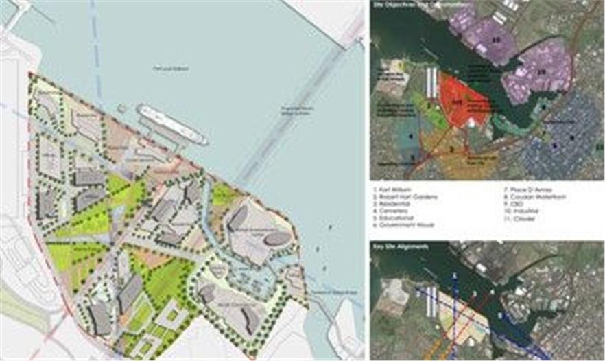 设计者Andy Fisher工作室计划将过去不被重视的滨水地带改造成一个93万平方米的多用途项目,包括一座航运码头、游客中心、饭店、零售店以及住房等。城市背景延伸到了邻里街道以及沿岸一系列公共广场中。这些广场形成了节点,与步行道一起连接了商务区。