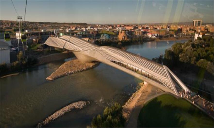 扎哈·哈迪德设计的这座桥梁的长度为260米。世博会结束之后,这座桥梁将在萨拉戈萨北岸地区的重建工作中起重要的作用。