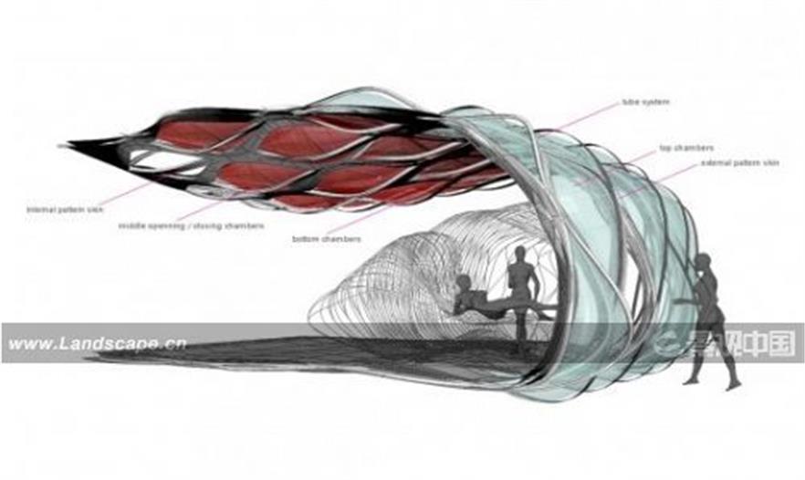 该方案是将平面转换为三维立体空间,其平面组件可以直接从制造工厂运送到场地。打包方便,组装简单迅速。一个同该建筑结构原理类似的复膜智能系统将被用于该建筑组件包装。