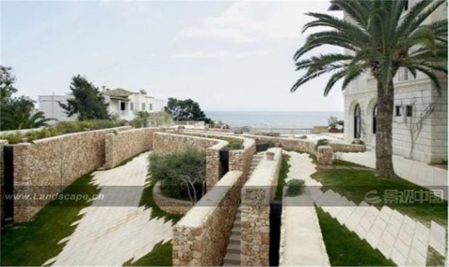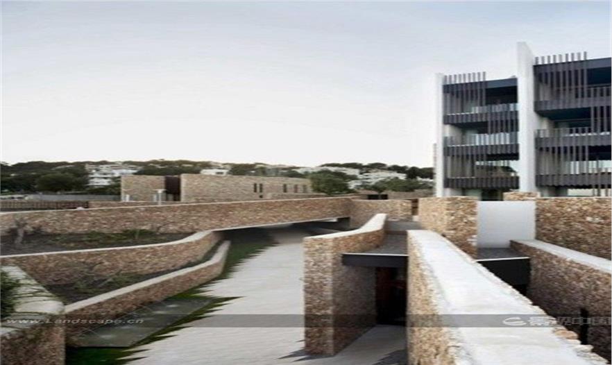设计师将新建筑设计为山谷状,用以唤醒当地的原始回忆——阶梯状的露台曾经被用于当地古代的农业活动。山谷将新区域与主建筑连接起来。干石墙与土地一同位于新区域之上。有时候,干石墙、土地将与斜坡、露台一起构成主建筑通向大海的日光浴场所。本地的沙土与石墙一道创造出一种理想的环境,使其与周边建筑脱离开来。