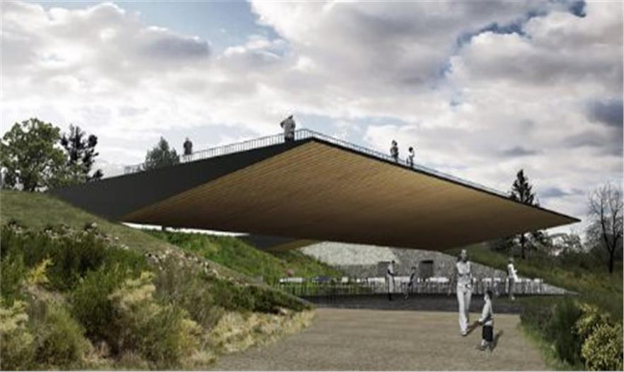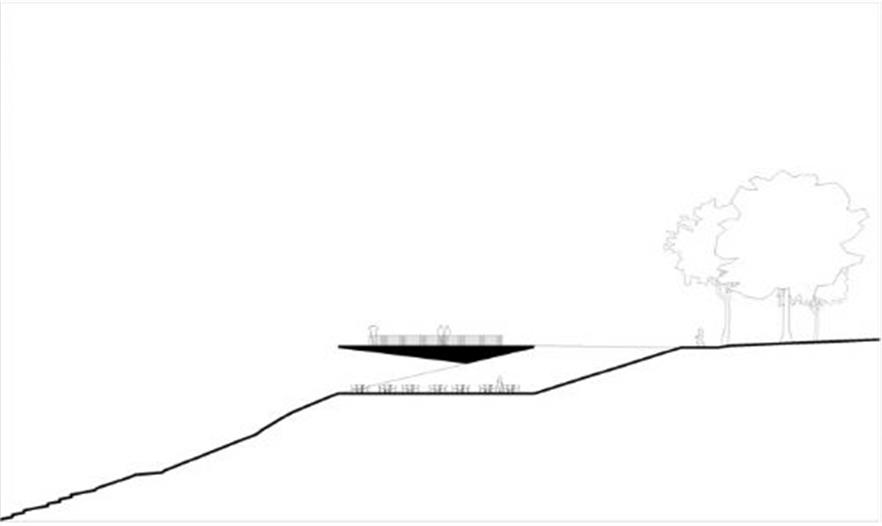 这是位于哈利斯科,瓜达拉哈拉,Parque Mirador Independencia的一个瞭望台加咖啡厅项目。项目隶属与赫尔佐格&德梅隆为当地所做的现代与当代博物馆绿化总规范围。瞭望台倚靠一个大山坡上,前面是壮丽的峡谷景观。瞭望台就是一个挑空的,浮在山坡外的简单平板,下面依靠斜牛腿与山坡固定。