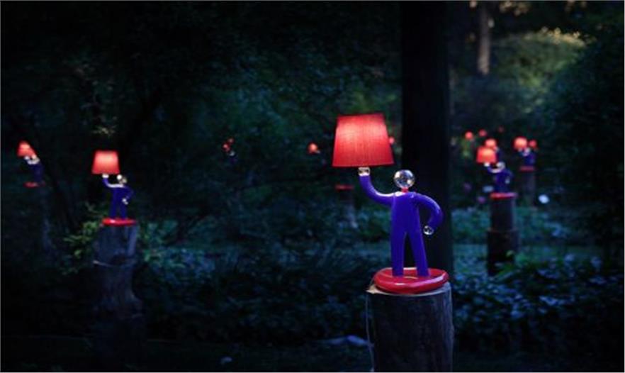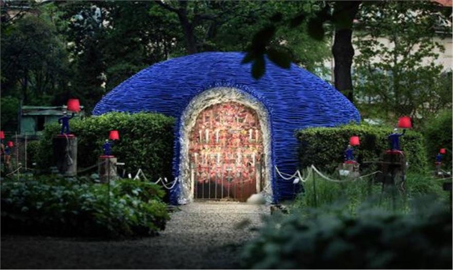 艺术家Paola Navone设计了一系列蓝色的树枝巢穴,吊灯就藏在里面,及其人们的好奇心。其造型 有着强烈的冲击力。这些大巢们有的搁在地上,有的浮在空中,形状各异,大小不同。人们进行着 寻找,经过探索,然后发现,最后被感动。 真的是非常美丽的一个作品。