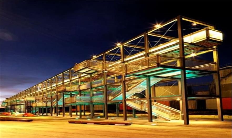 利用门架的电枢部分将这些重叠的设计方案定位,这让人们回想起建设地点的工业风格。这片区域有意设计成比较厚重的样式,譬如活动空间的结构、观景台、凉亭以及活动的框架。人们提议将这项设施用于大型超级游艇的最后“装配”,这是新西兰所拥有的一个专门行业。将该行业带入公众视野并将其融入设计之中,加强了人们真实浮华的海滨体验。