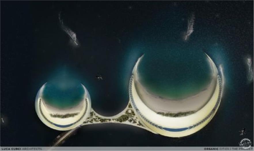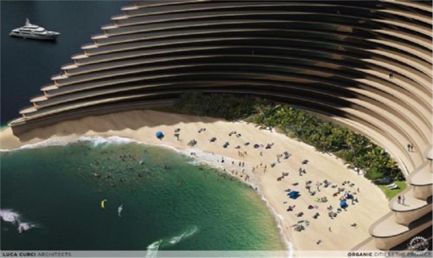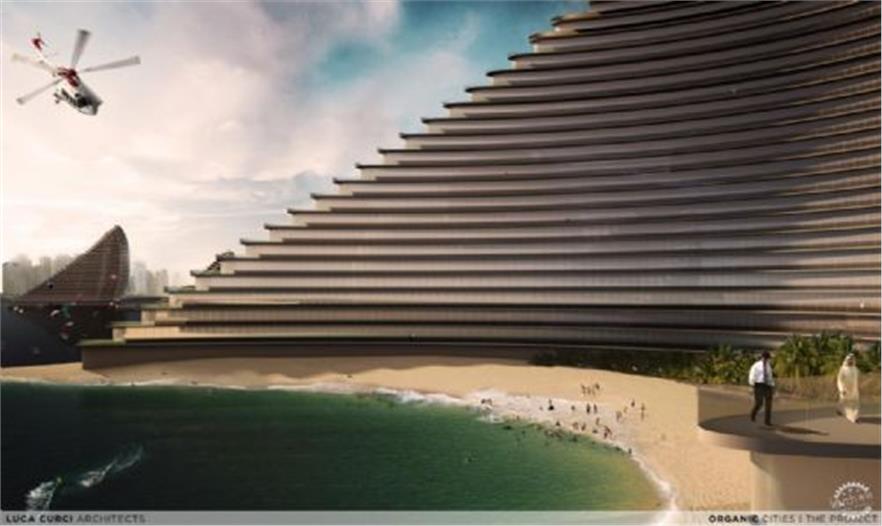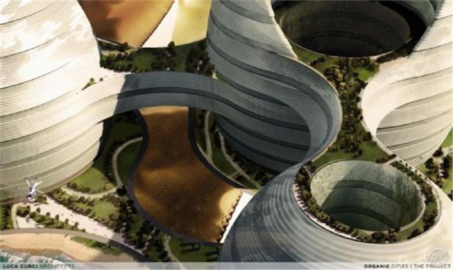 Luca Curci建筑事务所为阿拉伯联合酋长国进行了一个地标性设计,一个基于“有机城市”的理念对城市天际线具有创新性的项目。有机建筑作为新大都市的一部分,归并和整合了商业部分与住宅公寓部分、购物生活与健康区域、文化与社会生活相结合。该设计的目的是为人们创造一个能够满足生活、会面、学习、工作、社交并能创造新的混合文化的公共空间。