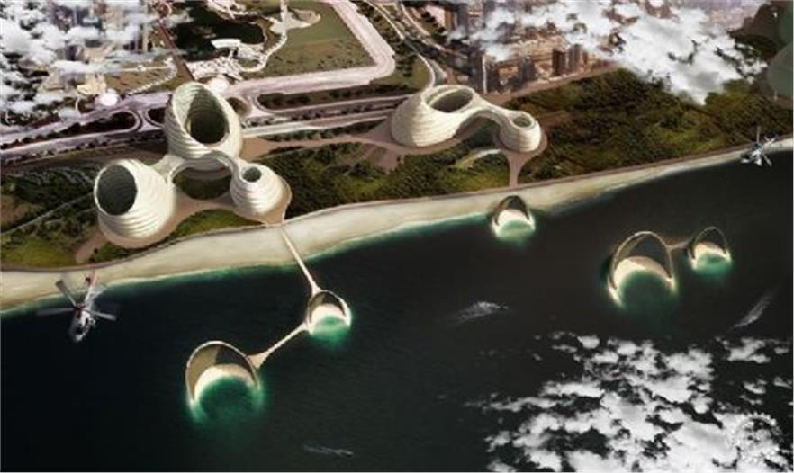该项目是由两部分有机组成:地面上的有机建筑,海中的“明月”。所有这些部分通过道路、公园和步行跑道进行连接。陆地上建筑的聚合具有未来性同时由有机的形状组合。海中的“明月”部分分为3种类型:小一些的是带有私密小路可通往海天之间的私人公寓住宅;中型的“明月”是直达海天和道路的酒店;大的“明月”是住宅、酒店和私人公寓的综合体。