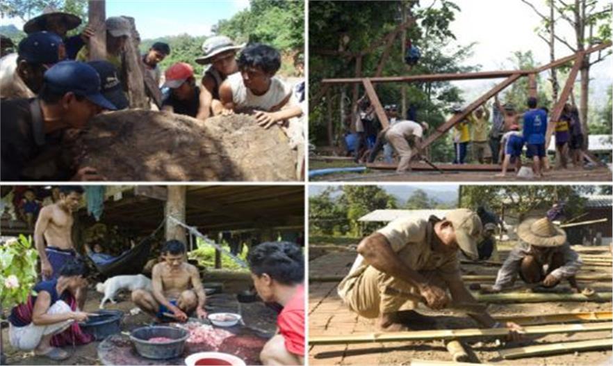 TYIN tegnestue建筑事务所结合地域特色进行设计,由克伦族的人们帮助一起施工完成了这些屋顶像蝴蝶展翅的房子。建筑在侧墙和后墙上运用了当地的竹编技术,房屋的其它部分也使用到了竹子和当地工艺,这些竹子从周围几公里的范围收集而来。