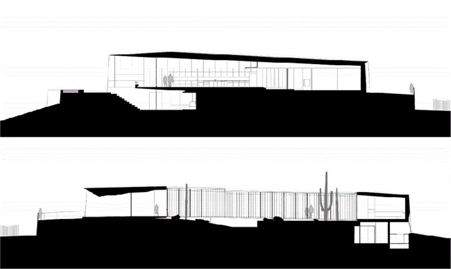 Desert Courtyard House的地板和墙壁封闭,是由混凝土混合一部分当地的土壤完成的。设计团队发现了该项目挖掘过程中被挖掉的泥土可以在砌主结构时做夯土墙使用,于是他们取出土壤样品送检,经检测适合用于工程建设中,这个举措大大减少了建筑材料运输到现场的成本。