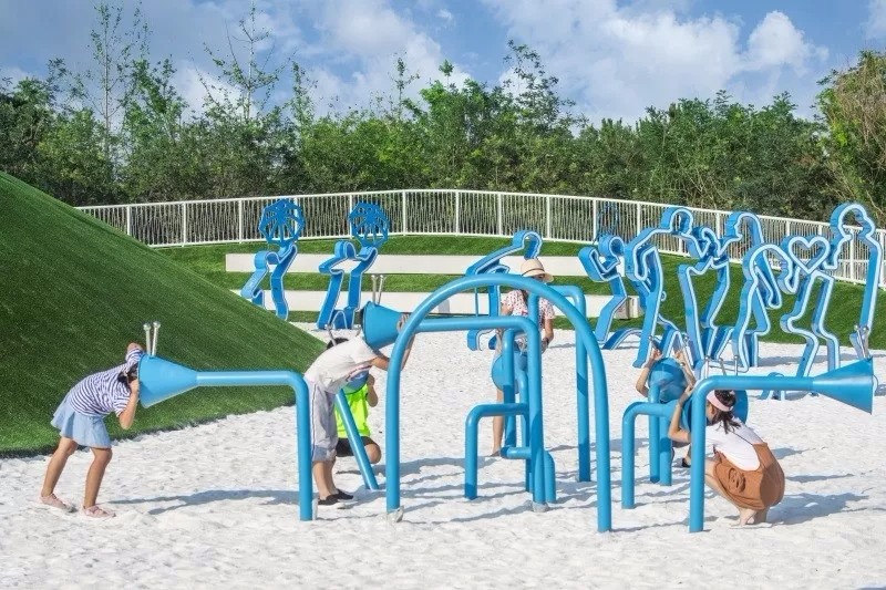 DON笛东设计团队为河北省第二届园林博览会打造了一个充满童趣,能激发孩子好奇心、释放孩子想象力的空间。根据孩童热爱探索与冒险的天性,运用大地艺术的手法,采用流线型绿草坡围合成一系列开放与闭合的游乐空间,让孩童体验“冒险”带来的惊喜,创造了一个符合孩童天性的创意乐园。
