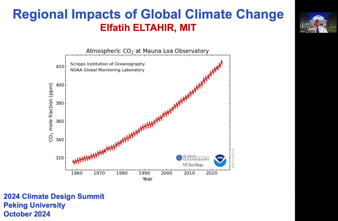 Eltahir教授首先指出,近100年来,地球地表观测温度持续上升,全球化石能源气体排放的增加导致甲烷排放量大幅增加,而政策制定者当下及未来的抉择对于全球变暖的趋势发展至关重要。