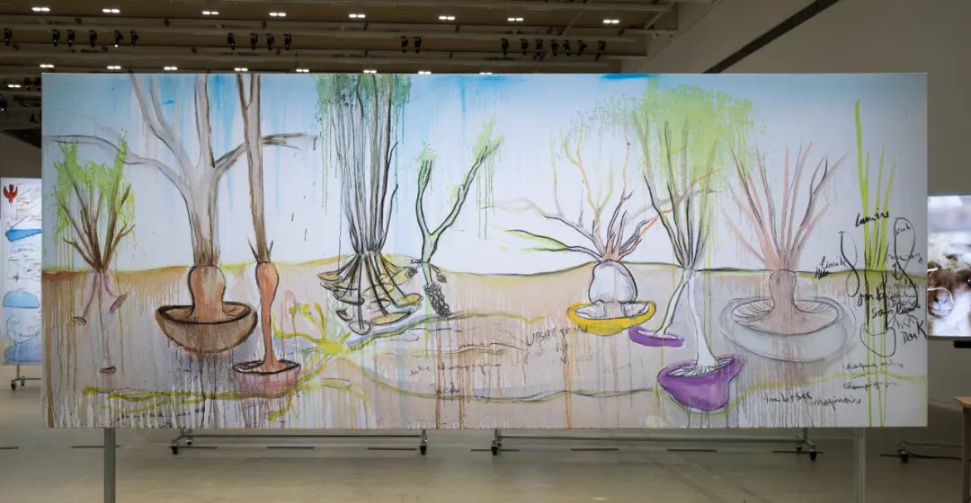 法布里斯·伊贝尔,《森林再造》,2022年,炭笔、色粉笔、油画颜料、画布。展览“从山谷中来”现场,上海当代艺术博物馆,上海,2025年 ©上海当代艺术博物馆