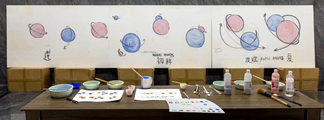 在伊贝尔眼中,《城市·森林》这件诞生于景德镇的作品,与中国山水画的表现手法相互呼应,旨在诠释大自然的精妙。创作时,他运用水画技法,融入态势绘画的理念,以轻盈灵动的笔触,消弭了自身与自然之间的隔阂。他摒弃了单纯对自然的写实描绘,转而在画布之上构建起一个自然生长、满溢生命力的世界,就像种子在土壤里生根发芽,蓬勃而发,展现了生命原始的力量与美好。“透过这件作品,萦绕在我心间的山谷风景逐渐浮现。在那里,我植树造林、描绘月亮、放牧羊群,同时也迎来诗人和艺术家朋友们。”他补充道。而在《友谊》这件作品里,他将中法两国的友谊描绘成两颗行星,彼此相隔甚远但始终围绕着对方运转。