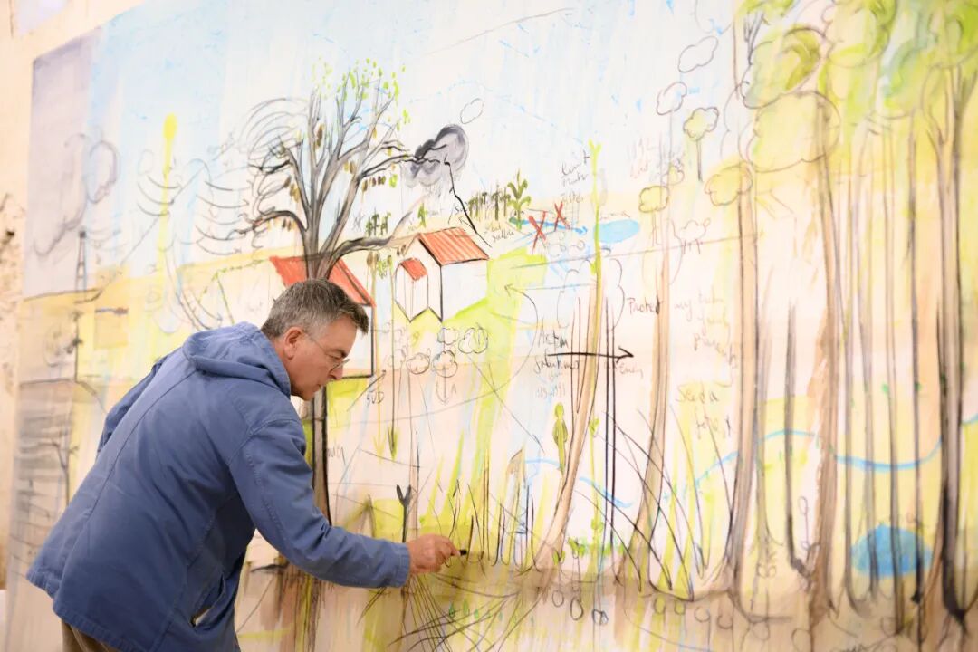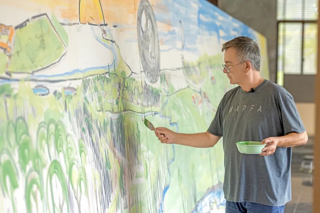 伊贝尔认为,艺术是观察世界的一种方式。“自开始绘画,我用大量的水与极少的颜料,造就奇妙效果,画布轻盈无比。”当听闻有观众将他所描绘的“山谷”比作中国的“世外桃源”时,他随即补充阐释。在他看来,山谷的风景“永远不会完成”,它更像是一部“万物之书”。在伊贝尔眼中,这片森林景观,其价值远超直观的美感。在风景背后,在地理学、经济学上都可以提供一些方案,助力修正人类活动引发的不良影响,推动事物朝着积极方向发展,源源不断地释放正能量。