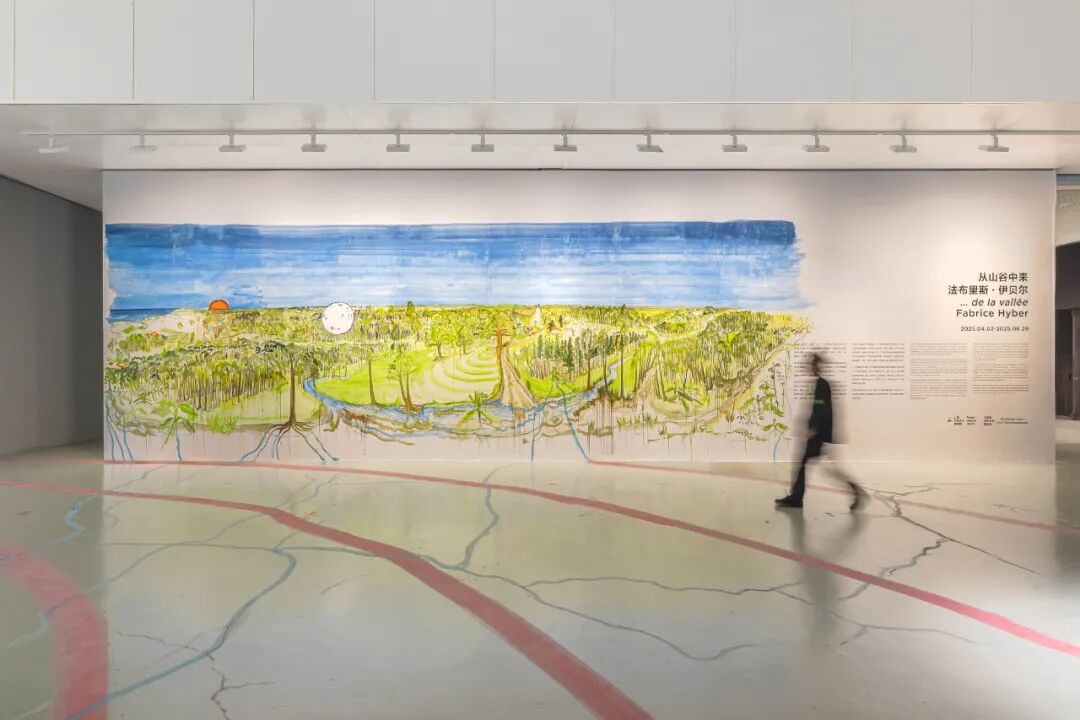 法国艺术家法布里斯·伊贝尔(Fabrice Hyber)在展览“从山谷中来”现场,上海当代艺术博物馆,上海,2025年。©卡地亚当代艺术基金会