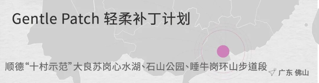 本次改造提升范围为苏岗新村、苏岗公园、睡牛岗周边、城北涌沿线区域,本文主要展示一期建设内容中的心水湖郊野公园、石山公园、睡牛岗环山步道段等节点。苏岗公园、首开街区两大改造节点详见《Bubbleverse 街区泡泡漫游丨顺德大良苏岗公园改造项目》。