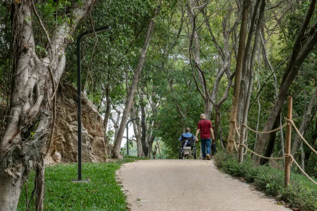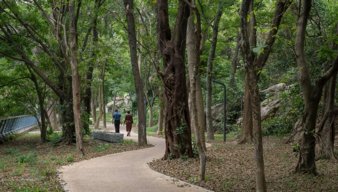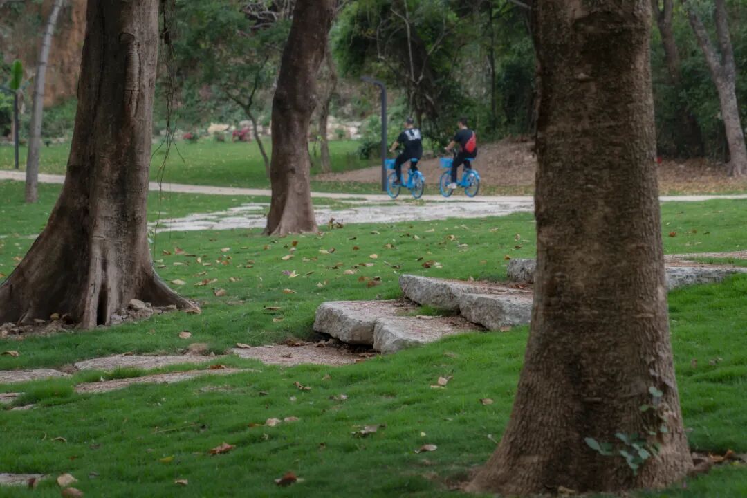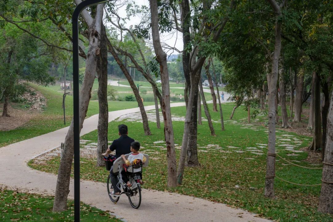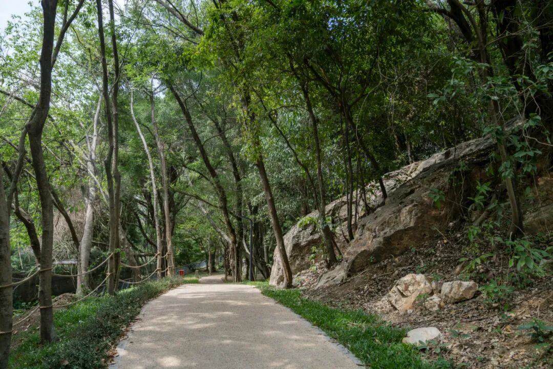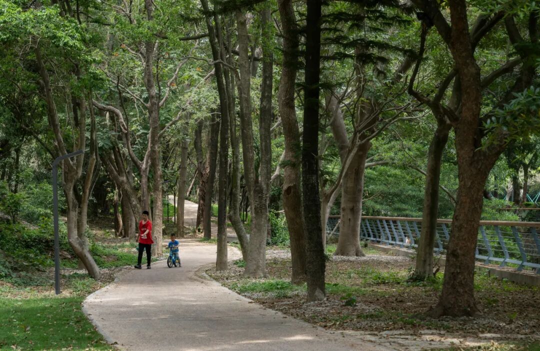 在睡牛岗区域,我们通过对原有道路的优化整合,形成完整的环游闭环系统,让市民可以更好地亲近与感受自然。漫步于此,斑驳树影轻抚肩头,或是骑行林间,草木清香的微风掠过耳畔。原先未被完全开发的睡牛岗,成为了当之无愧的城市森林氧吧。