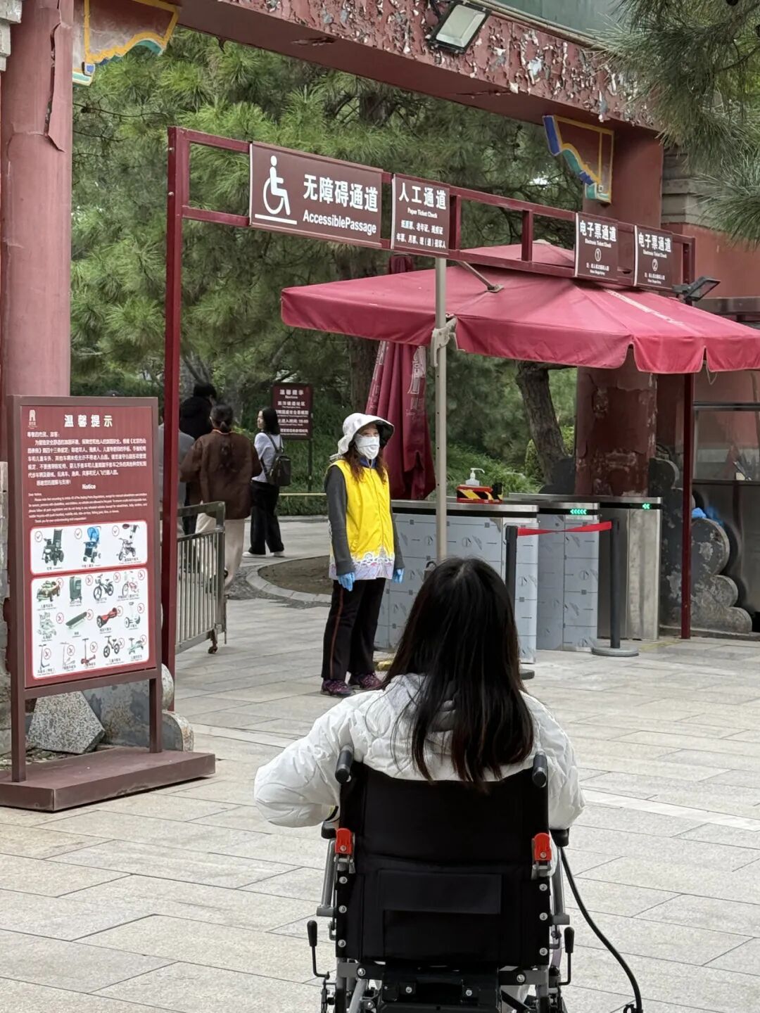 乘坐地铁时,无障碍电梯隐蔽、安检时轮椅勉强挤入、进站需等工作人员改闸机方向,全程像在“闯关”,十分有压力;圆明园中的指引很清晰,室外走得顺畅,可室内陡坡卡得电动轮椅动不了,部分建筑没有坡道只能望而却步。