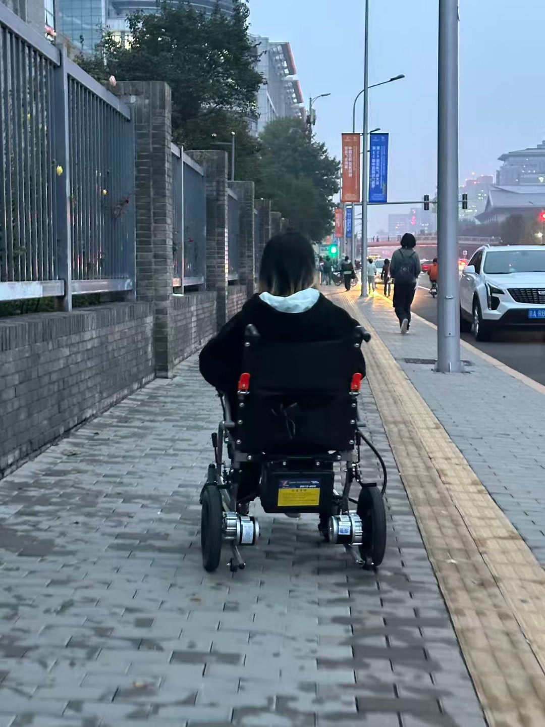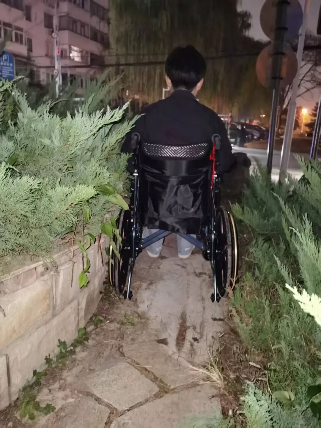 坐着轮椅亲身体验校园的通行环境,我才真正把“人适应环境”还是“环境适应人”这个问题想明白了。以前用双脚行走时,从没留意过路面上的小坎、坡道的衔接。直到自己操控轮椅,才发现哪怕是几厘米的高低差,都足以让轮子卡住、进退两难。更让我感到无奈的是,无障碍通道上铺设的盲文点。这或许是出于对视障群体的善意设计,可那些凸起的点位,却让我的轮椅轮子频频受阻。那一刻,我真切体会到:当环境只考虑单一群体的需求,反而可能给另一群人制造新的障碍。