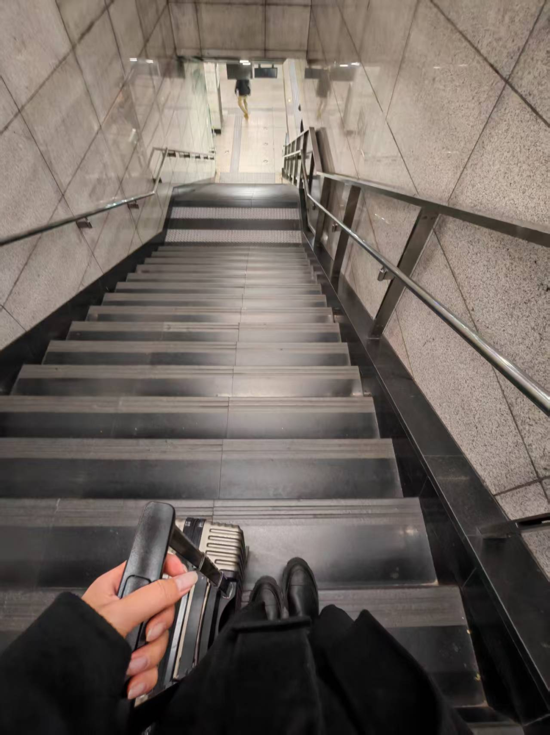 行李箱体验:地铁下行没有扶梯,没有找到直梯