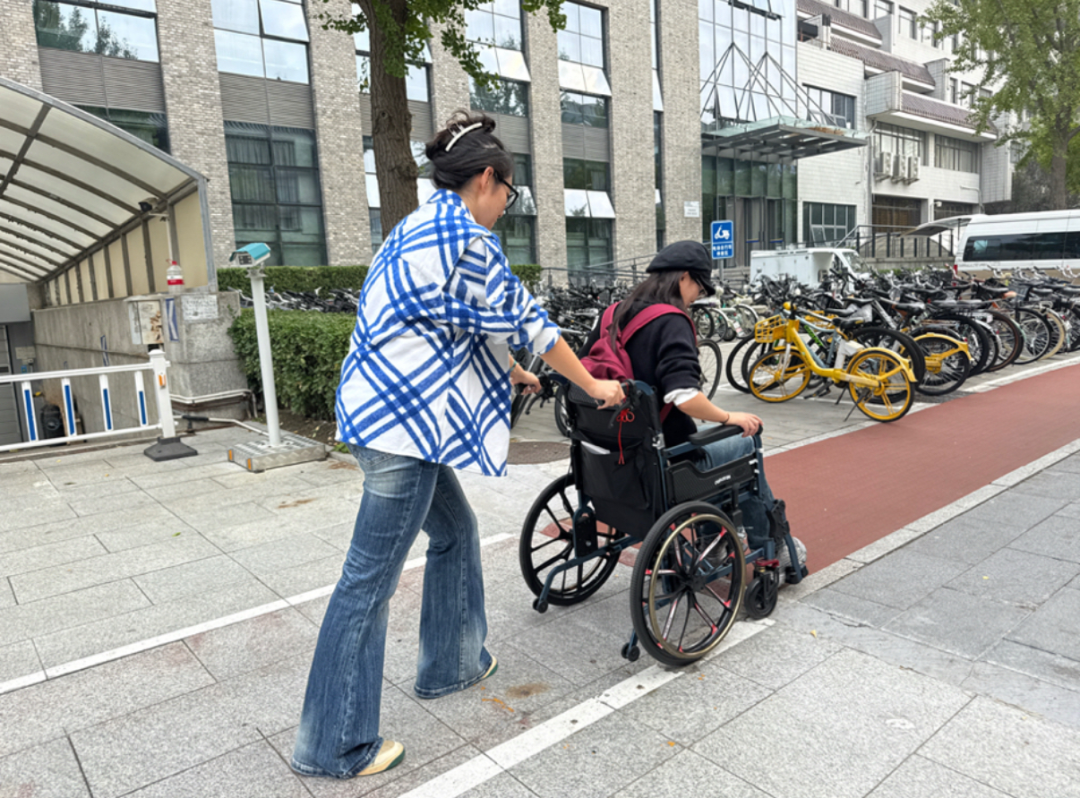 当我坐上轮椅,以一米的高度重新丈量我每日穿梭的校园时,熟悉的北大瞬间变得陌生而充满挑战。曾经一步跨越的台阶,成了难以逾越的屏障;一道小小的门槛,也需要反复调整角度才能“惊险”通过。我(作为大多数时间不需要无障碍设施的人)也应该融入包容性环境,去共同维护无障碍设施。