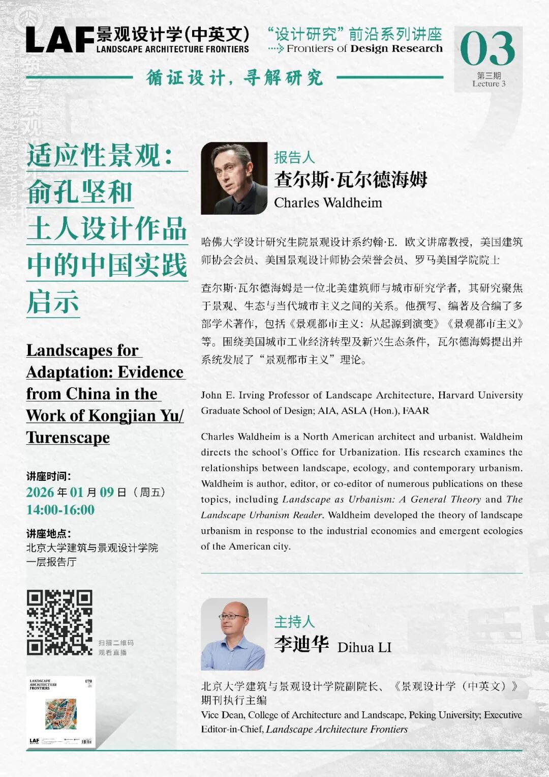 由《景观设计学(中英文)》编辑部及主编、副主编团队发起的“设计研究”前沿系列讲座,聚焦人居环境规划设计核心领域,广邀城乡规划、建筑学、生态学、社会学、地理学等跨学科知名专家、学者和设计师,开展高水平学术分享与深度思想碰撞。