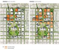 环境策略:通过减少地面停车场和车道面积,同时结合以最优的雨水处理办法,水资源的质量将得到显著改善,同时能够最大限度地减少暴雨的冲击。增强的交通、便捷的自行车和人行道与住宅区形成紧密连接,将降低综合体中汽车的出行率。全新的景观规划和茂密的树木将有效减少铺砌路面的热岛效应,同时还能够降低附近建筑物的能源需求量。水资源的有效利用和当地生物栖息地的构建也已被列入规划的设计方针和条例当中。