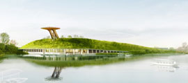 中国湿地博物馆被美国绿色建筑委员会(USGBC)授予LEED绿色建筑“金奖”认证。博物馆建筑外形与布展设计及建筑装修紧紧围绕“低碳与环保”这一主题展开。建筑外形以“绿丘”作为表现载体,将整个建筑巧妙地与山丘融为一体,与西溪国家湿地公园浑然一体,成为西溪国家湿地公园中唯一的标志性建筑。[详细]