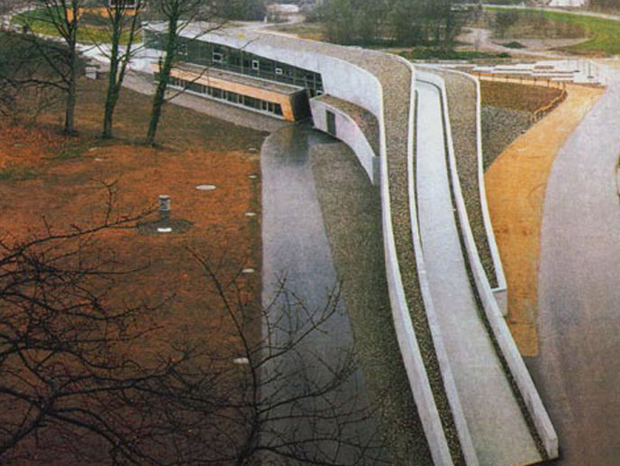 LFone园艺展廊优美的曲线犹如山丘河流一般自然,周围的环境规划也和建筑的曲线相呼应,草地像原野展开,土地像河流的滩涂。建筑内部粗犷的结构,延续了地方材料的真实性和文脉。在其通透的内部,多来源的光形成斑驳的影。各种形式的窗依然勾画出建筑整体的舒缓线条,在建筑内部依然能清晰的感觉到 "大自然"的模糊的空间特性。这种不刻意的分割,和不确定的空间构成,既是整个建筑空间概念的延续,也使人在疏朗的空间中感觉到自然的流动性。扎哈•哈迪德先从自然现实中抽象出整个建筑构思的概念,即自然山川、河流、沙漠、森林的穿插交流的曲线形态,和其交织形成的空间形态。强调了台阶的停顿感,"河流三角洲"的转折感,以及各组曲线之间的穿插感,立面的节奏感。
